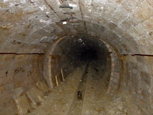 Die Stollendaten: Länge ca. 750 m; Breite ca. 2 m; Höhe ca. 2.5 m