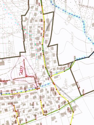 Das Bild 3, links, zeigt die Karte von Hausen um 1920. In Bild 4, rechts, ist der Stollenverlauf entlang der Münzentalstrasse ersichtlich.
